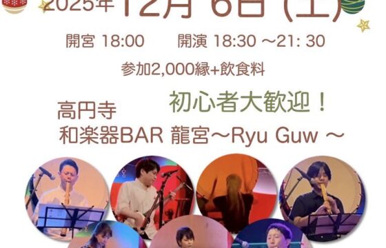 🎄 和楽器オープンマイク 🎄 2025年12月6日(土) 開宮 18:00 開演 18:30~21:30 参加 2,000縁 + 飲食料 初心者大歓迎! 和楽器好きな方どなた様でも参加できます♪ #高円寺龍宮 和楽器BA...